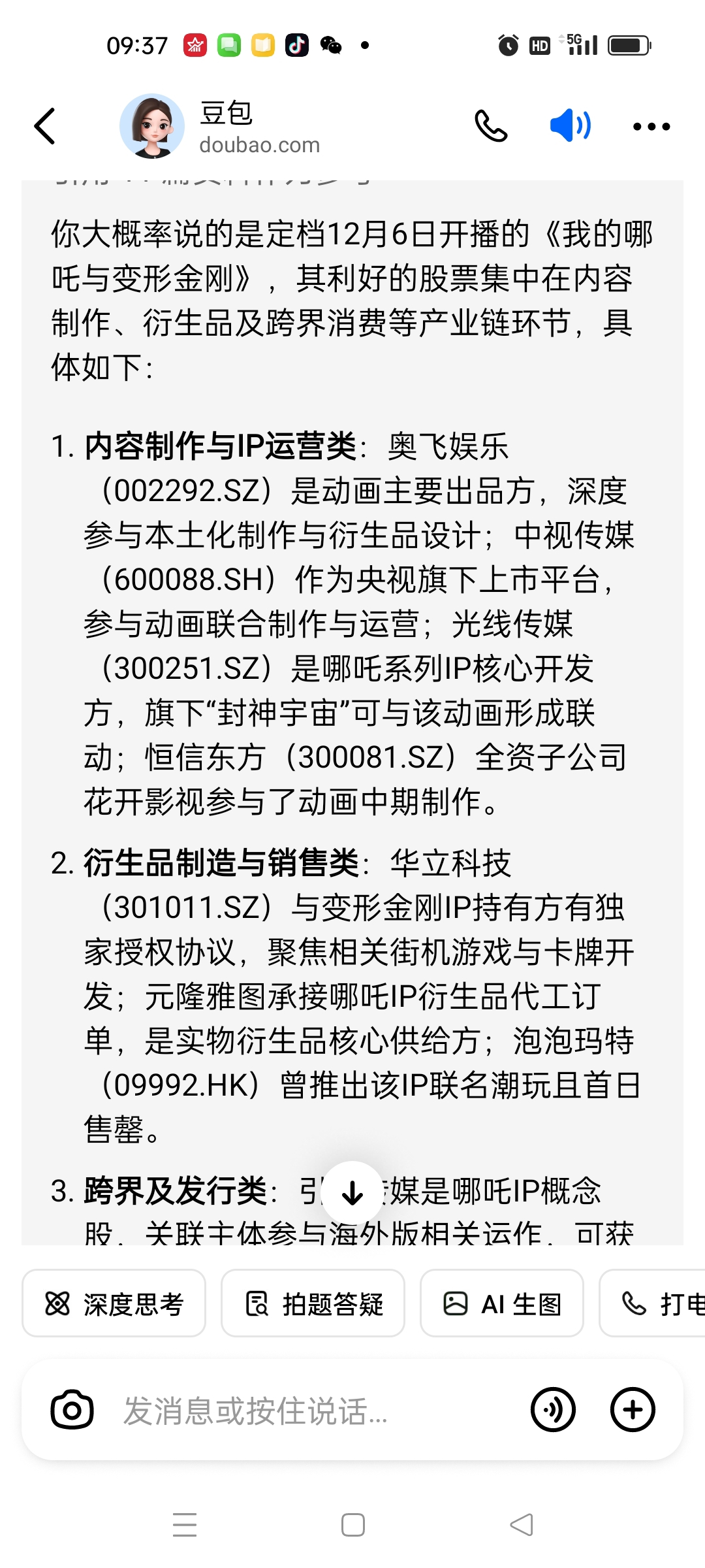 $奥飞娱乐(SZ002292)$ 我的哪吒与变形金刚6号上映