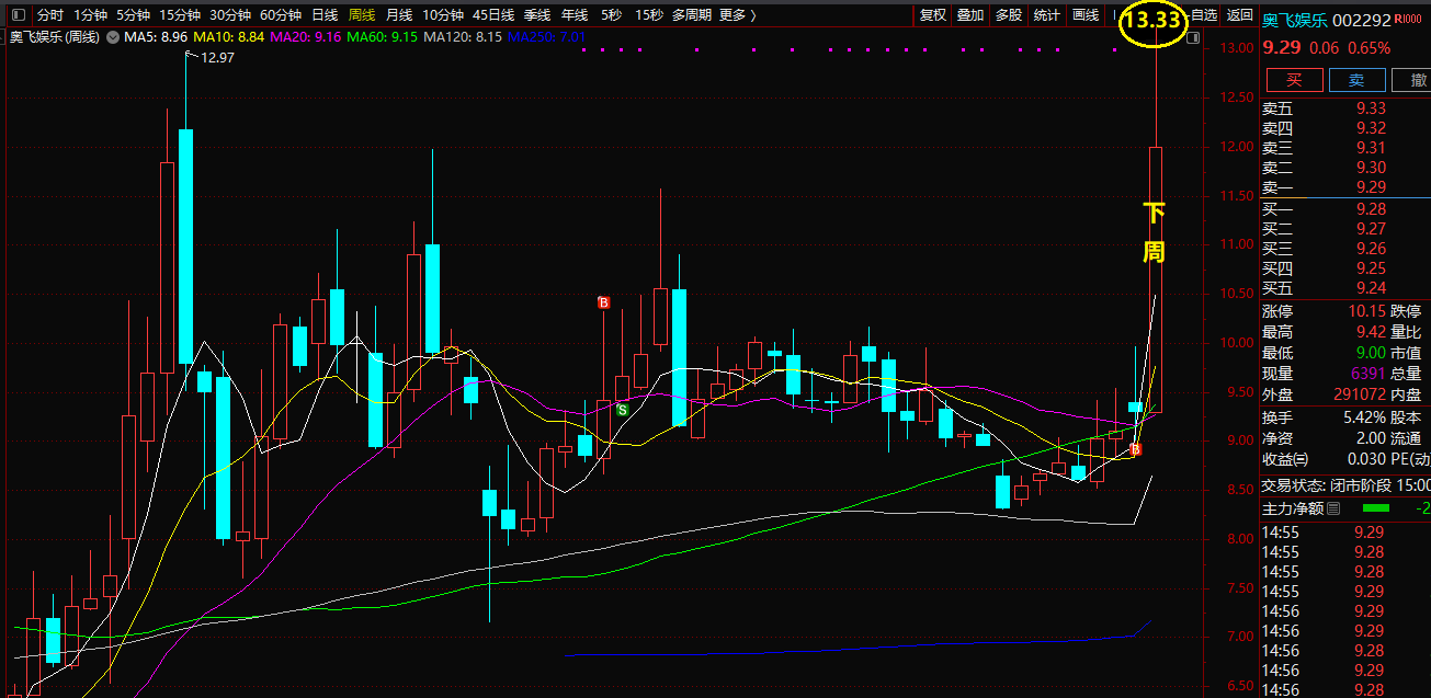 本大师打开透视眼观测:下周周K线标准答案出炉,13.33不见不散!