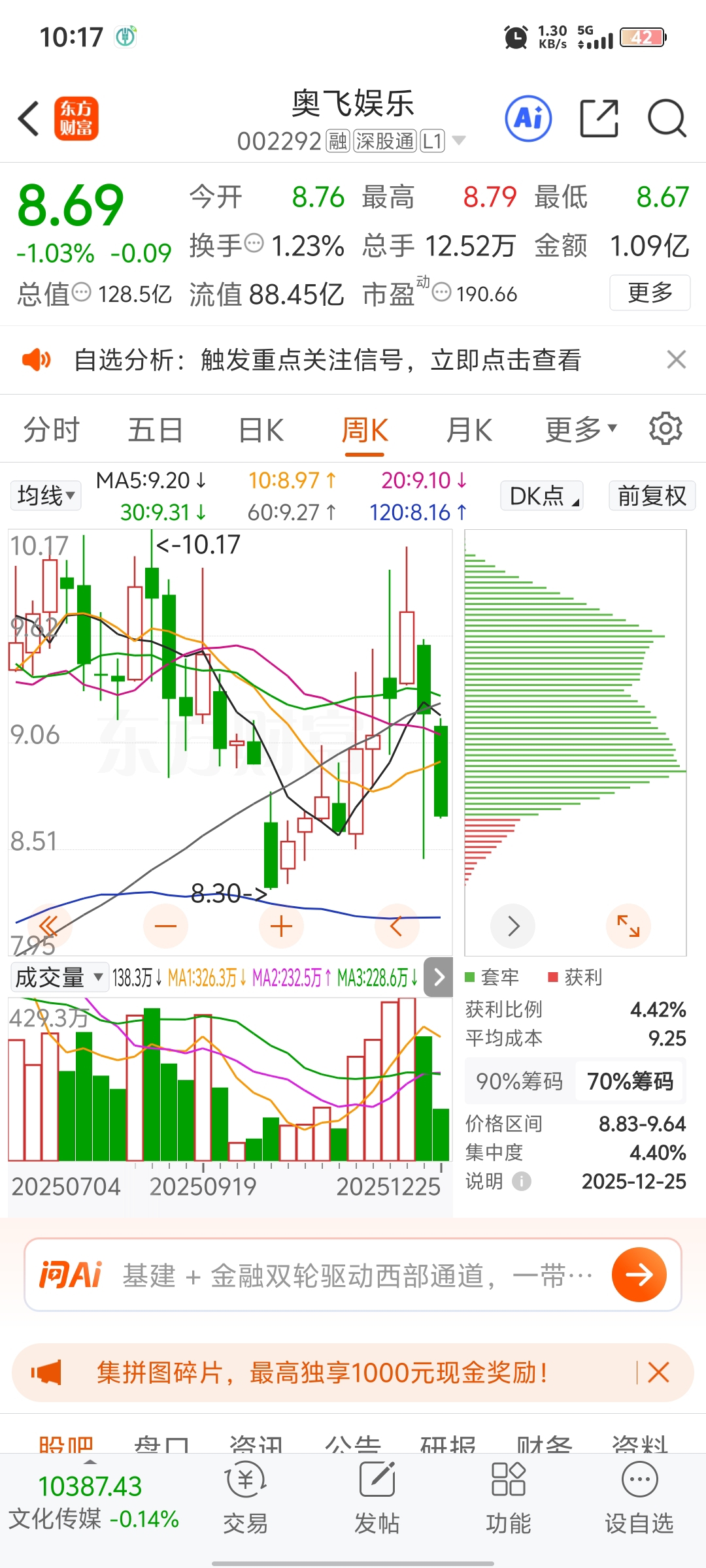 $奥飞娱乐(SZ002292)$ 6块抄底,很近