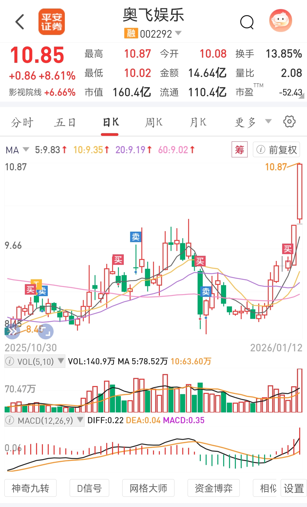 $奥飞娱乐(SZ002292)$ 不知道的还以为二连板了这k线