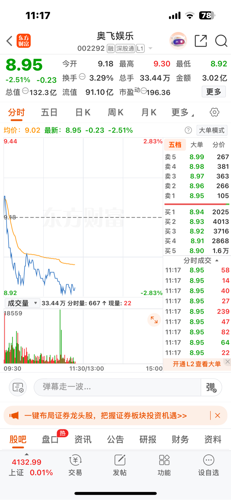 $奥飞娱乐(SZ002292)$ 8.9元1.6万手托单,估计是融资客的最后一道防线,托单都是弱势群体,被打得被追防守,如果是强者,早就买入拉升护盘了,所以,见大单托而不举,必有大跌在后面,耐心等待融资盘被打爆.打爆了就安全了。