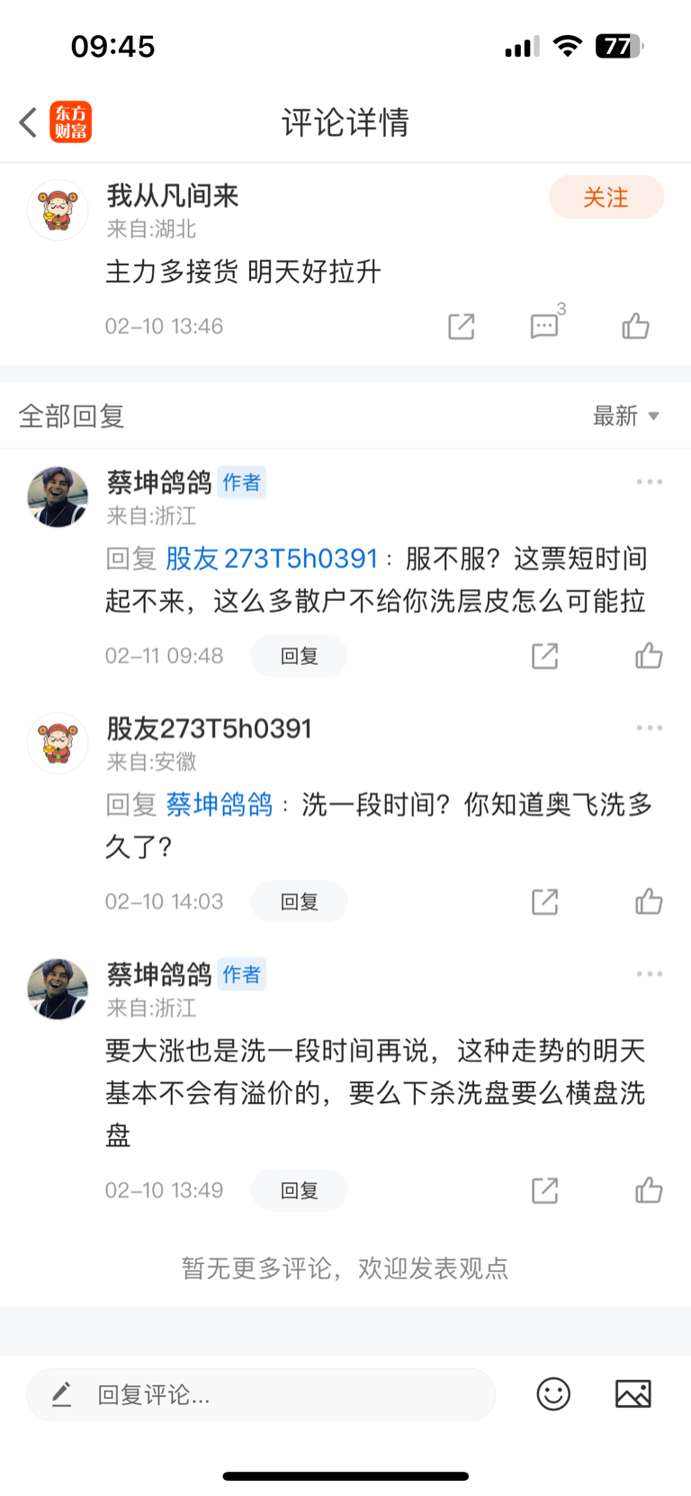 温馨提示: 1.根据《证券法》规定,禁止编造、传播虚假信息或者误导性信息,扰乱证券市场;2.用户在本社区发表的所有资料、言论等仅代表个人观点,与本网站立场无关,不对您构成任何投资建议。用户应基于自己的独立判断,自行决定证券投资并承担相应风险。《东方财富社区管理规定》