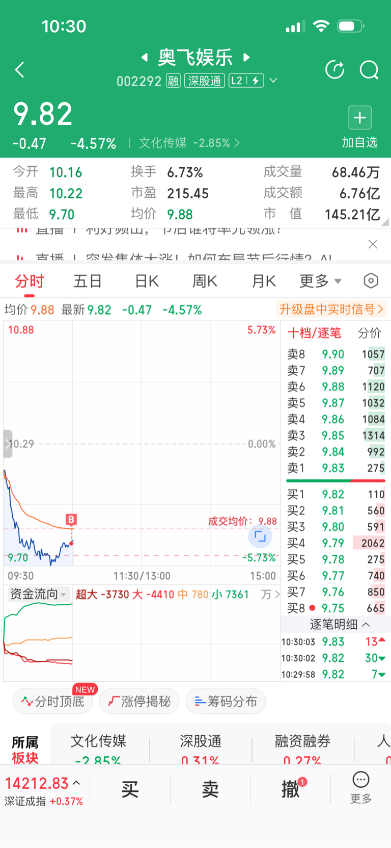 $奥飞娱乐(SZ002292)$ 压单已现,大胆加仓。