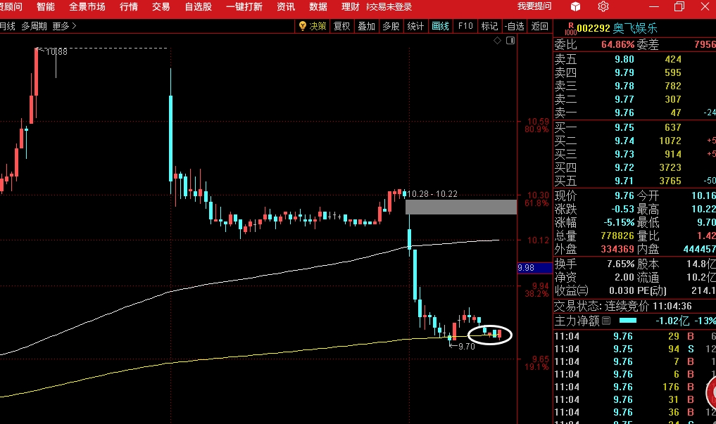 $奥飞娱乐(SZ002292)$ 9.74要是跌破,趋势就不好了…