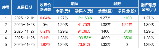 罗莱生活:融资净偿还211.53万元,融资余额1.27亿元(12-01)