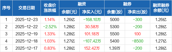 罗莱生活:融资净偿还168.1万元,融资余额1.26亿元(12-23)