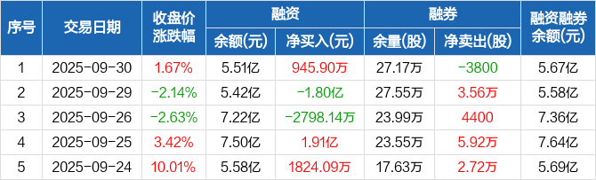 信立泰:融资净买入945.9万元,融资余额5.51亿元(09-30)