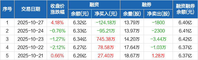 信立泰:融资净偿还124.18万元,融资余额6.32亿元(10-27)