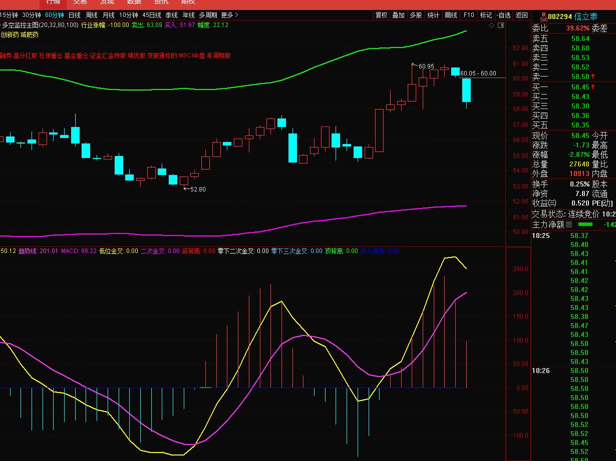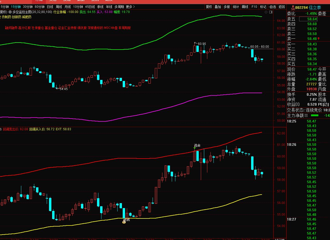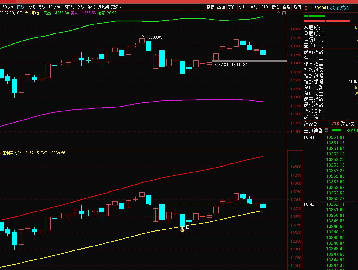 我发几张图示说明,你可以看上面左边,有的是日K线,有的是60分钟K线,有的是15分钟K线,看看就应该明白我说的。 至于要调整到什么位置,只能到时再说。今天已经跌到5分钟位置止跌,我看应该跌到15分钟位置。