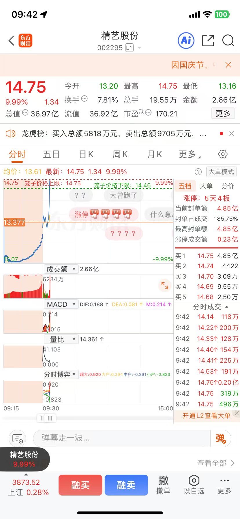 $精艺股份(SZ002295)$ 10月8号开盘顶一字板有人信吗?