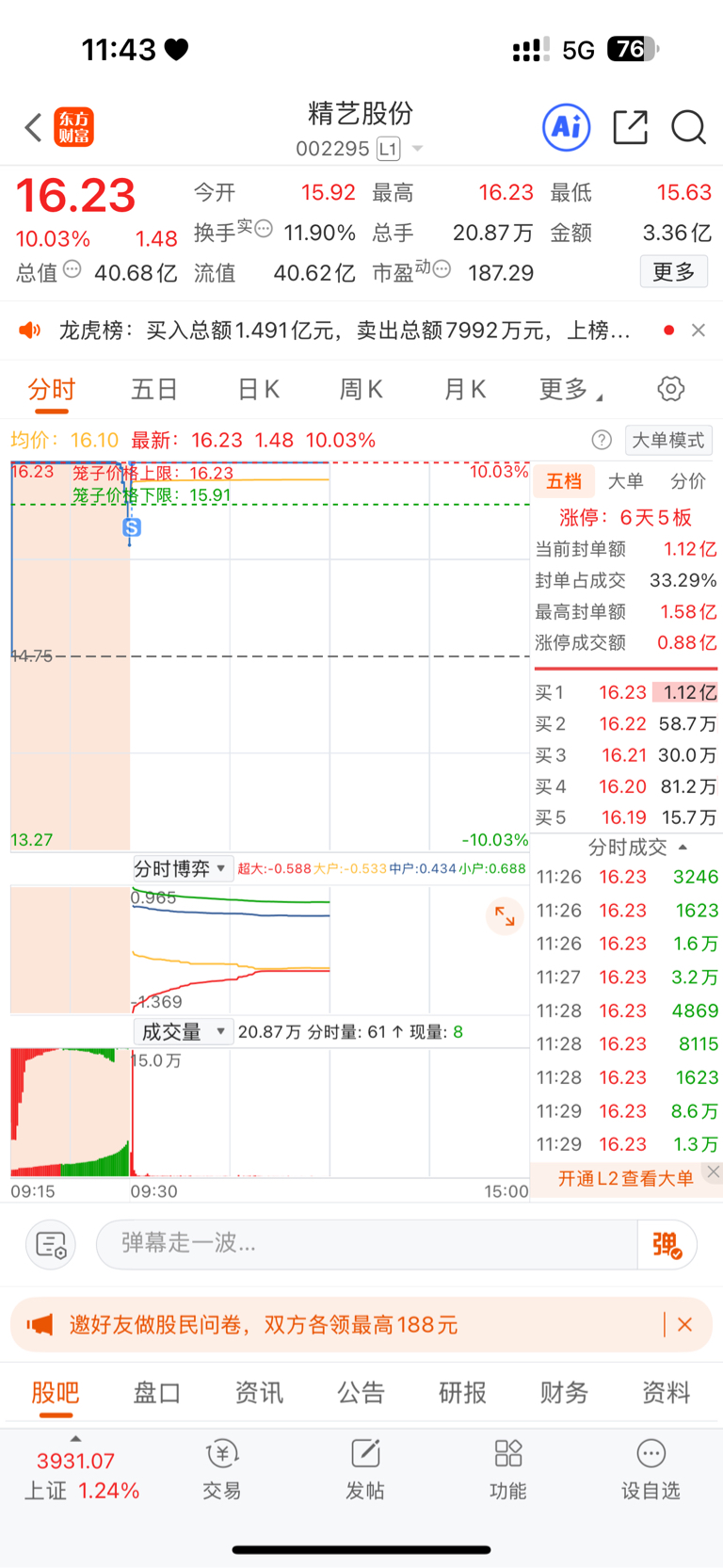 $精艺股份(SZ002295)$ 板上走了,不知道是好是坏