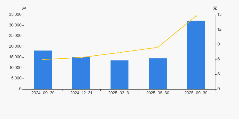 2024年9月30日至今,公司股东户数显著大幅增长,区间涨幅达76.75%。2024年9月30日至2025年9月30日区间股价上涨146.33%。