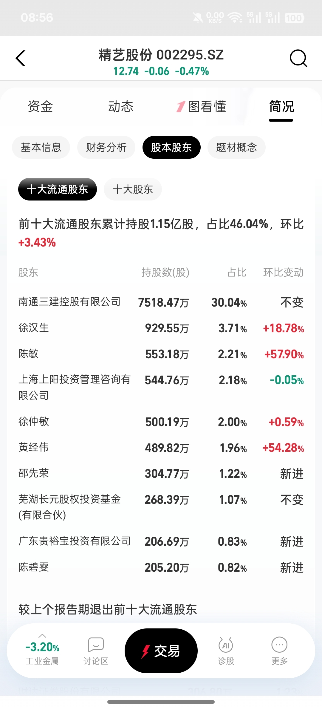 $精艺股份(SZ002295)$ 十大股东都增持了,人家不比小散清楚?