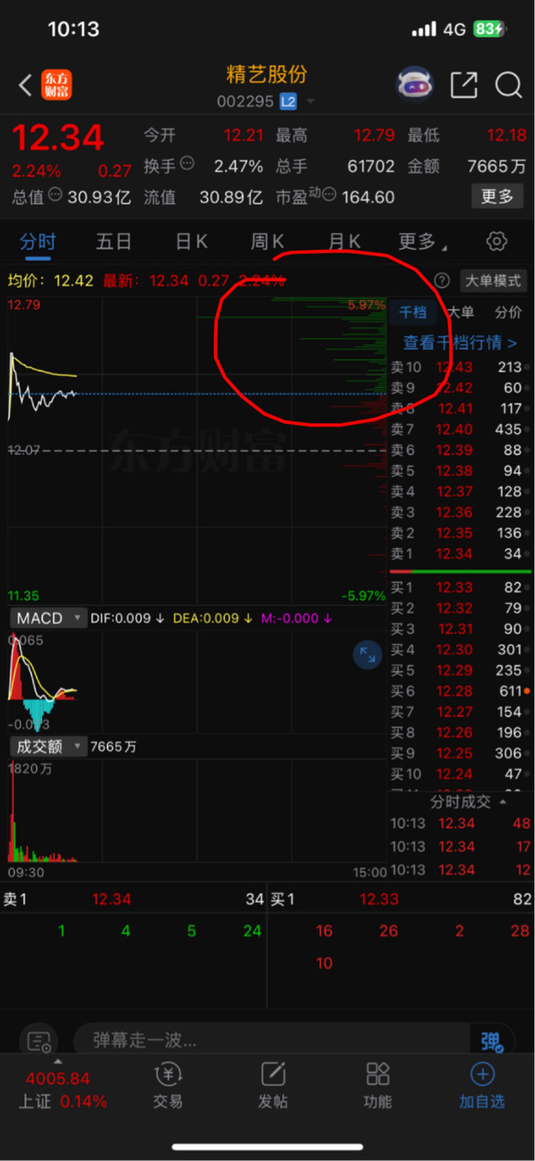 $精艺股份(SZ002295)$ 卖盘比卖盘大太多,主力拉升犹豫不决