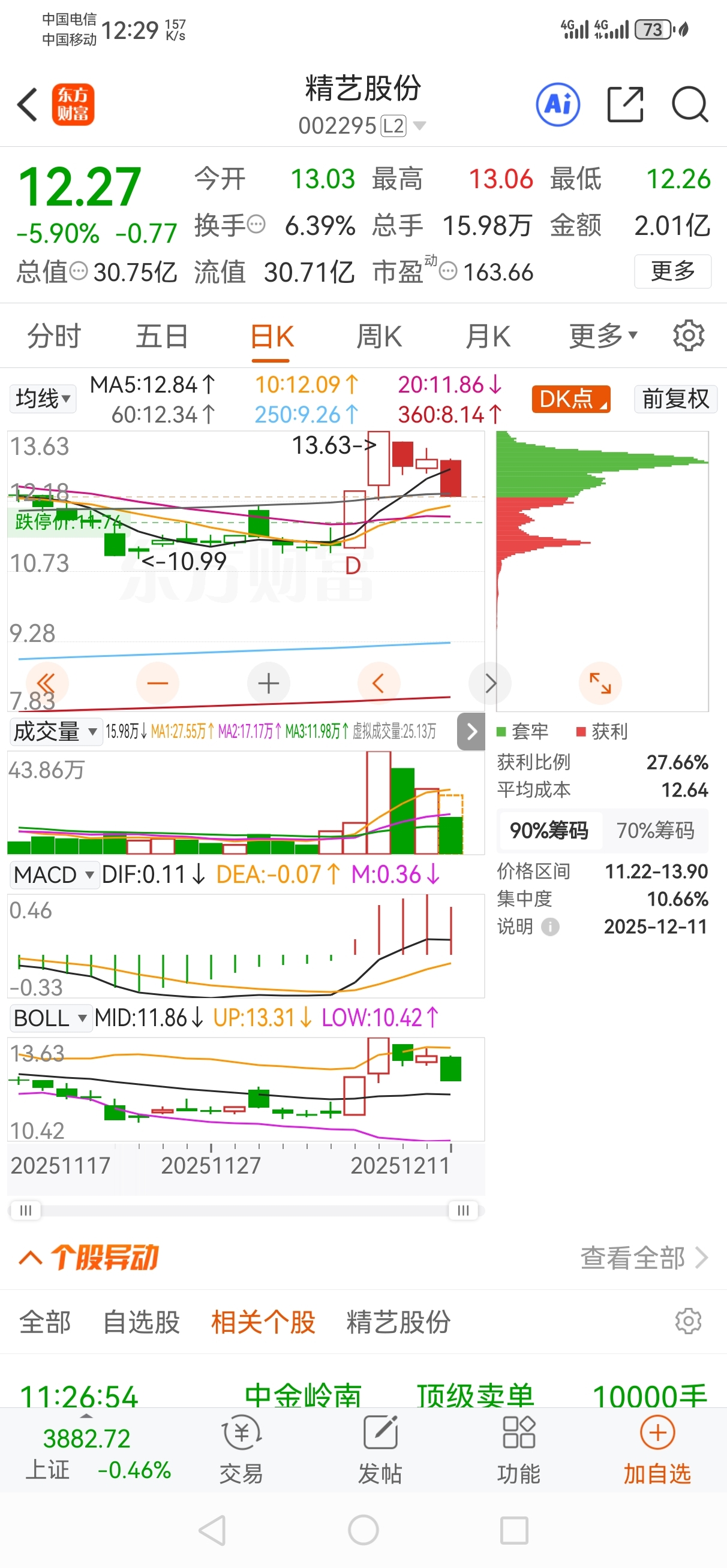 这个走势回踩11.86是必然的,有可能再次跌破,毕竟股性不好还没有热点,散户暴增