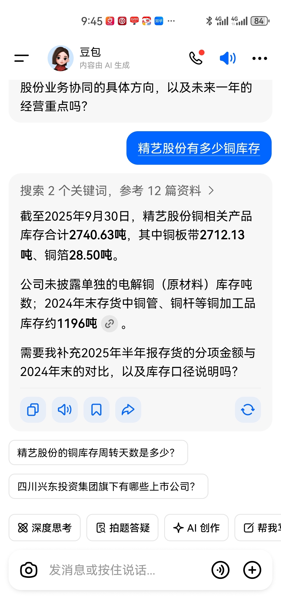 豆包上的数据真假几何呀??如果公司常备存货有2000吨以上,那么铜每吨涨价2万,