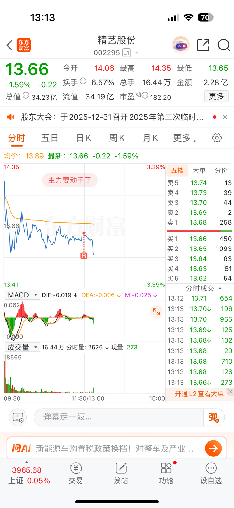 $精艺股份(SZ002295)$ 对不起各位,今天刚来。