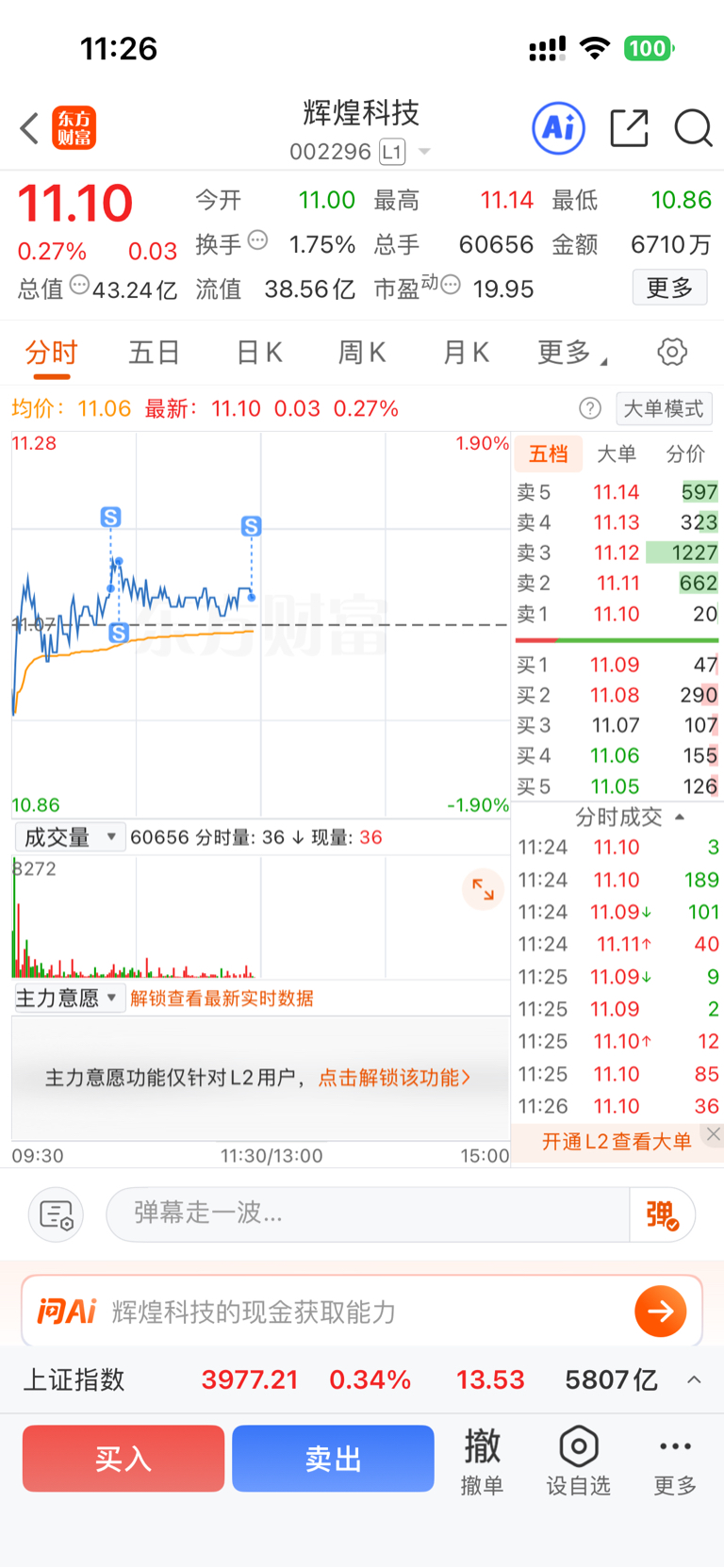 $辉煌科技(SZ002296)$ 大盘缩量了,撤