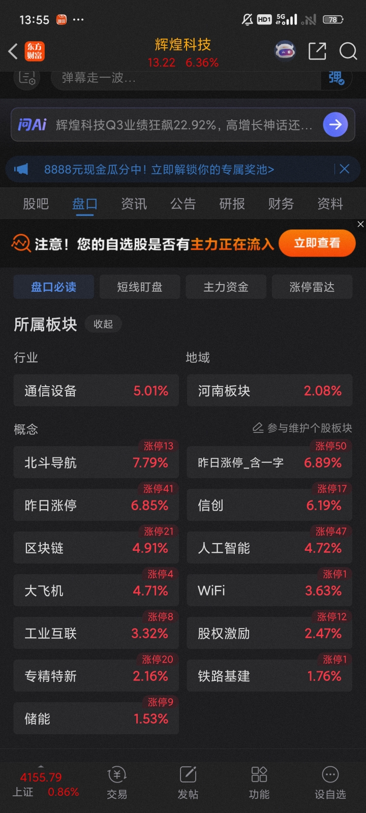 $辉煌科技(SZ002296)$ 让我多赚点,明天筹码给小散