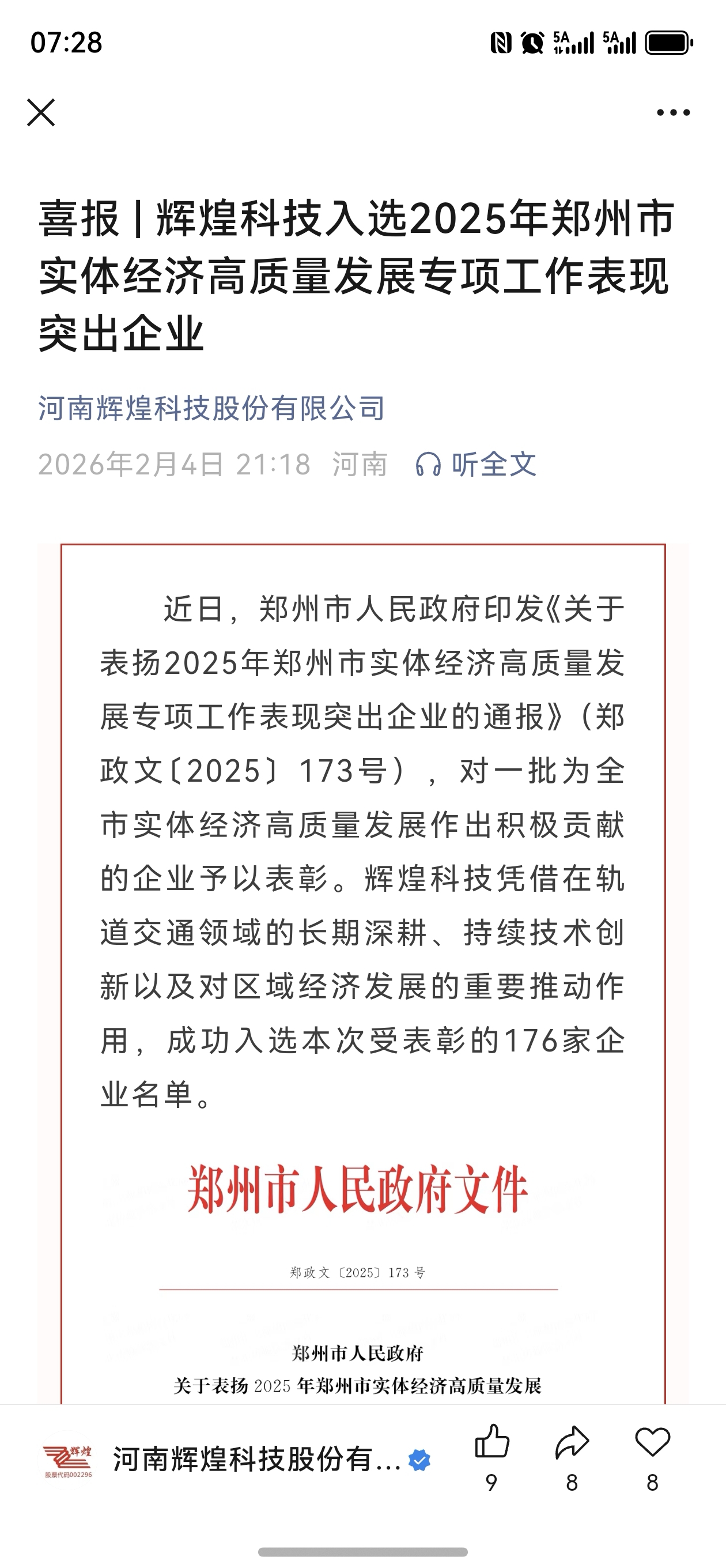 $辉煌科技(SZ002296)$