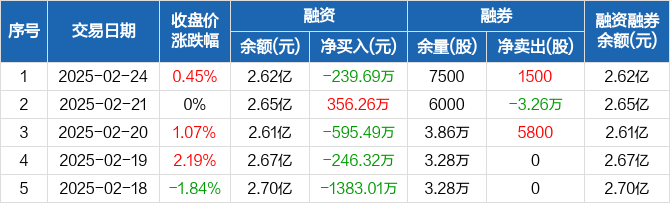 博云新材:融资净偿还239.69万元,融资余额2.62亿元(02-24)