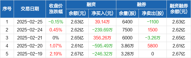 博云新材:融资净买入39.14万元,融资余额2.63亿元(02-25)
