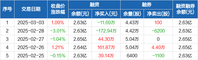 博云新材:融资净偿还11.69万元,融资余额2.63亿元(03-03)