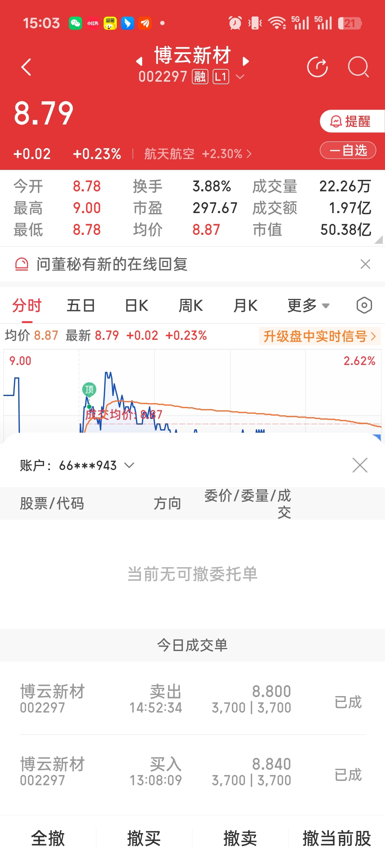 $博云新材(SZ002297)$ 本来想做个T,坐反了