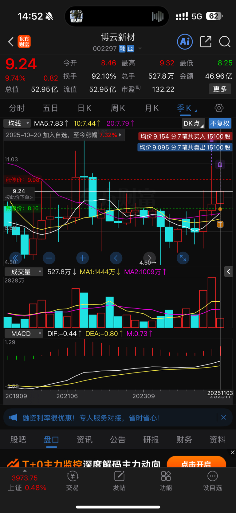 $博云新材(SZ002297)$ 我就知道你会涨的,可惜我只玩短线