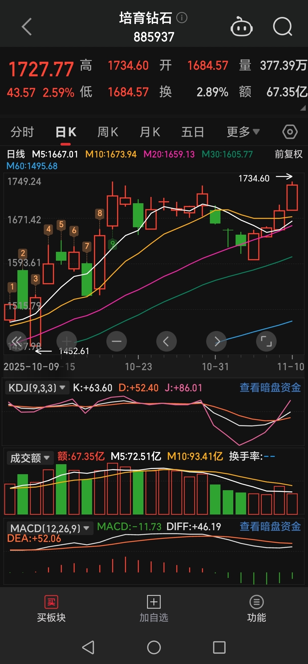 培育钻石周五和今天都涨疯了都不跟,还留着它干什么你?等大跌吗?久盘必跌!不跟涨必