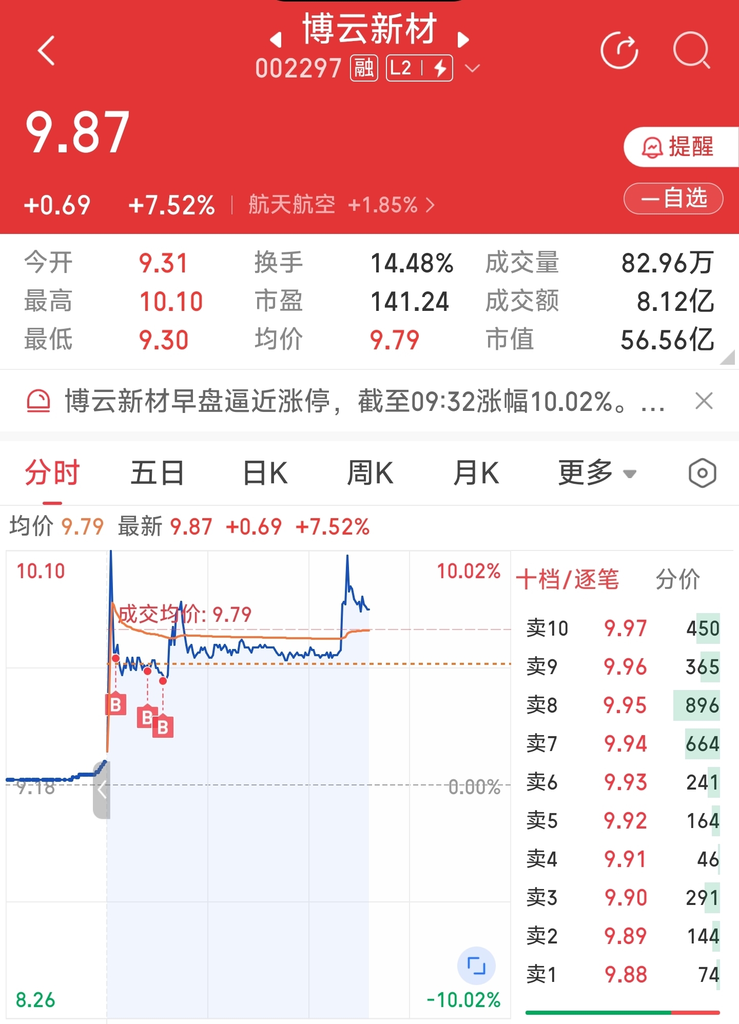 $博云新材(SZ002297)$ 从早上封板被你砸下来9.65,满仓合力下午继续给你抬轿封板,苟毕玩意现在还这样砸盘? 你就说你想干什么