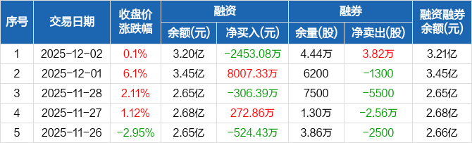博云新材:融资净偿还2453.08万元,融资余额3.2亿元(12-02)