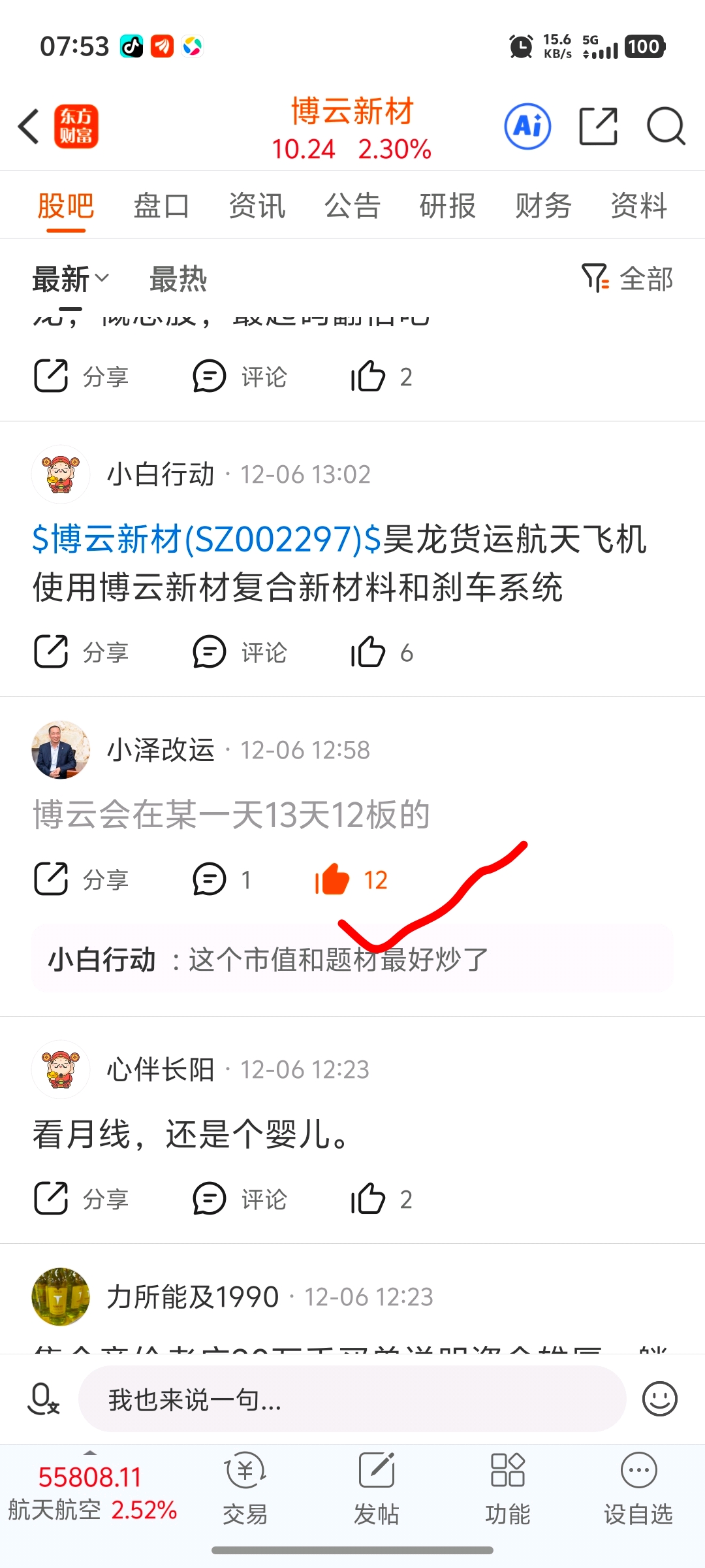 $博云新材(SZ002297)$ 这就是传说中的一个赞一个板吗?正好12个赞,具体哪一天呢?
