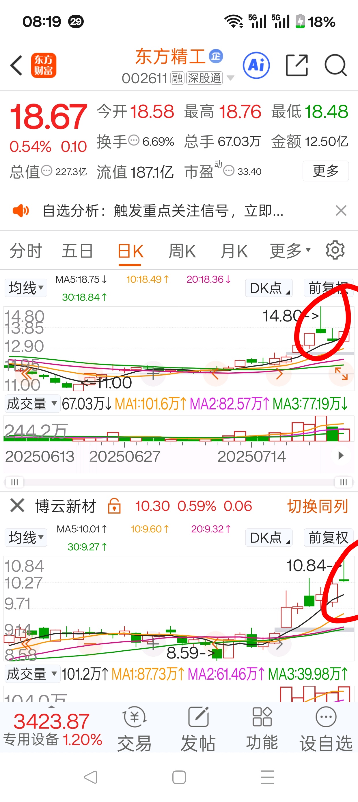 $博云新材(SZ002297)$ 跌破五日线,没啥问题。参考几个高位十字阴线后的走势。今天博云,你开盘卖出总没错。低位买。走揉搓线。两天后,将连续大涨的。参考走势图