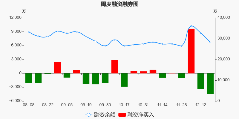 博云新材本周(2025/12/15-2025/12/19)累计涨幅达2.16%,截至12月19日最新股价报收10.42元。从增量上来看,12月15日至12月18日融资买入交易规模1.42亿元,融资偿还规模1.87亿元,期内融资净偿还4481.3万元。从存量上来看,截止12月21日,博云新材融资融券余额2.82亿元,其中融资余额规模2.82亿元,融券余额规模8.25万元。