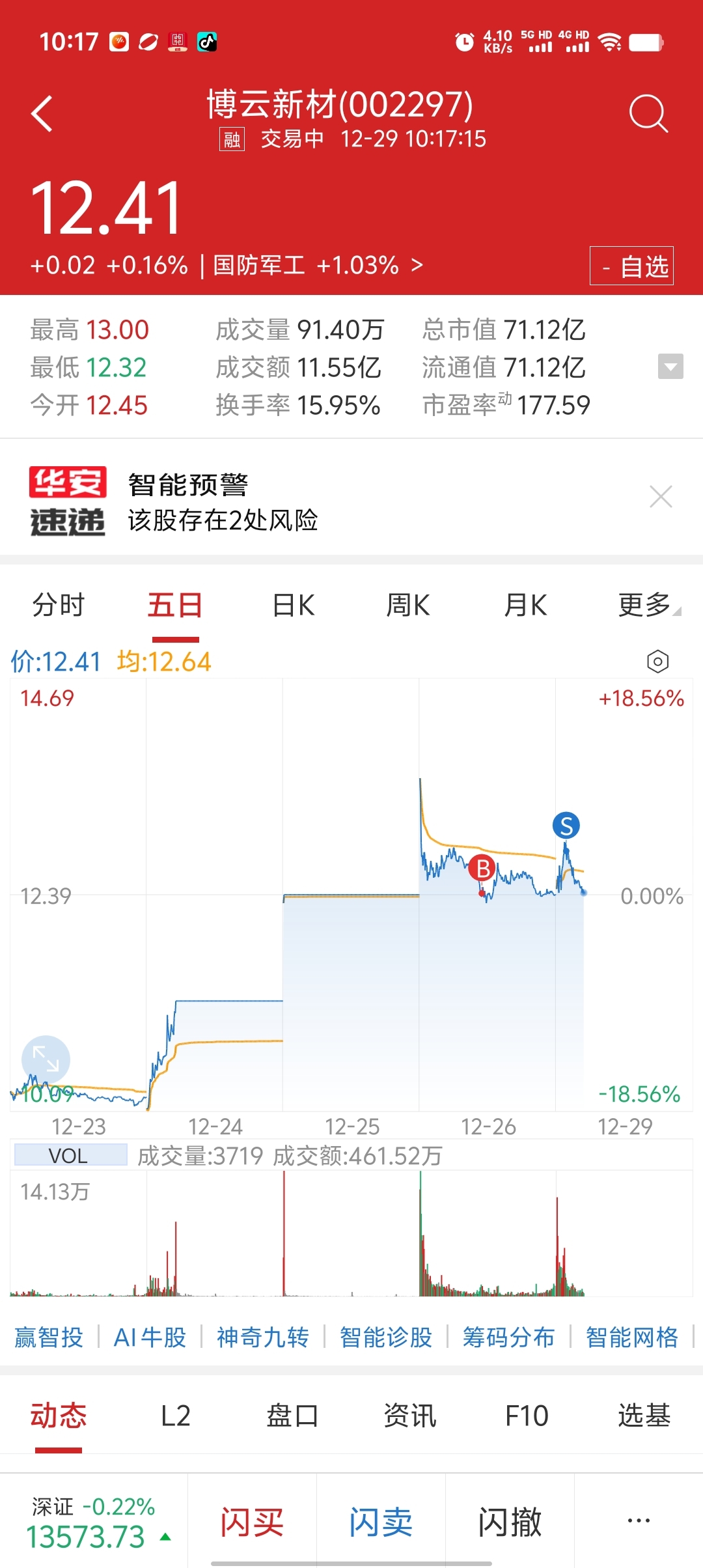 $博云新材(SZ002297)$ 周五进来的,走了!