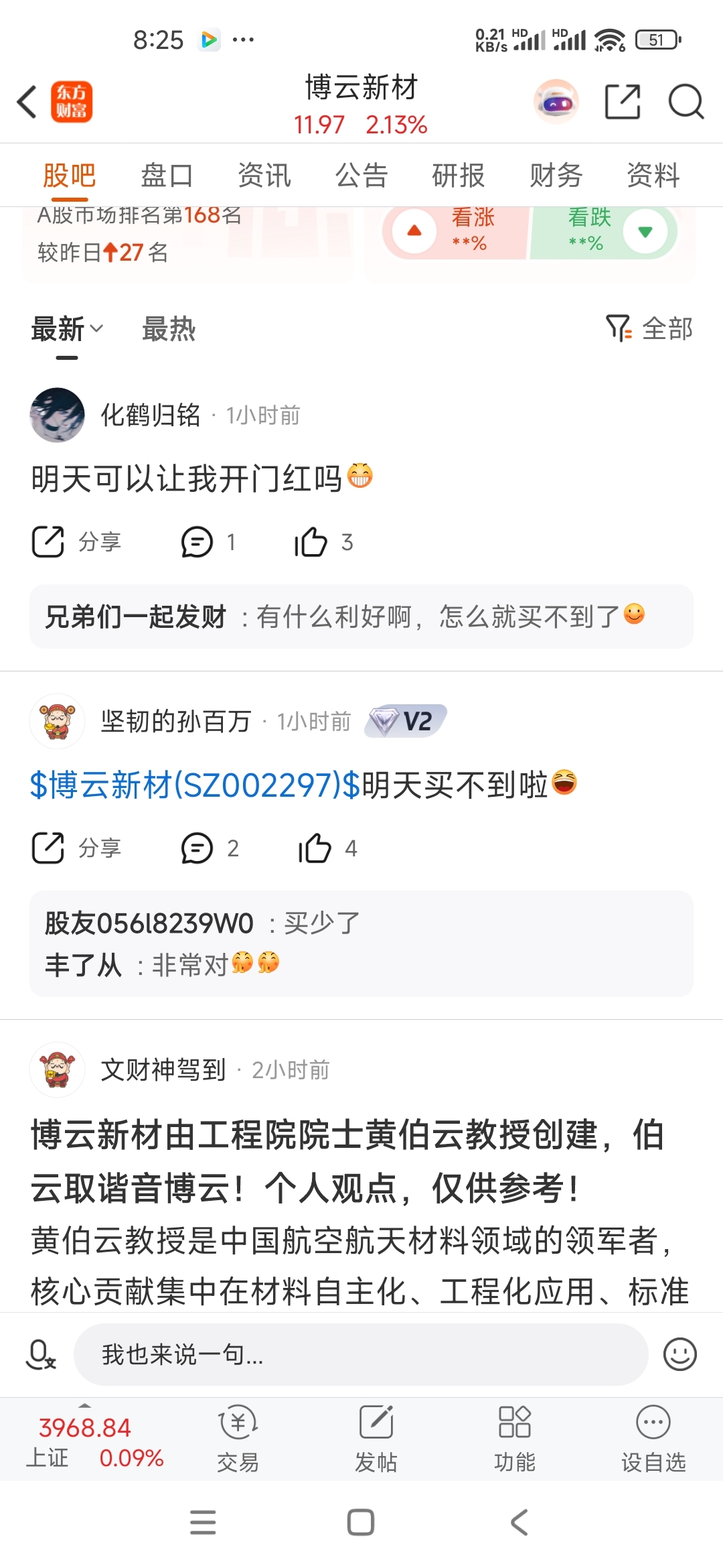 $博云新材(SZ002297)$ 昨天不是吹今天买不到的吗