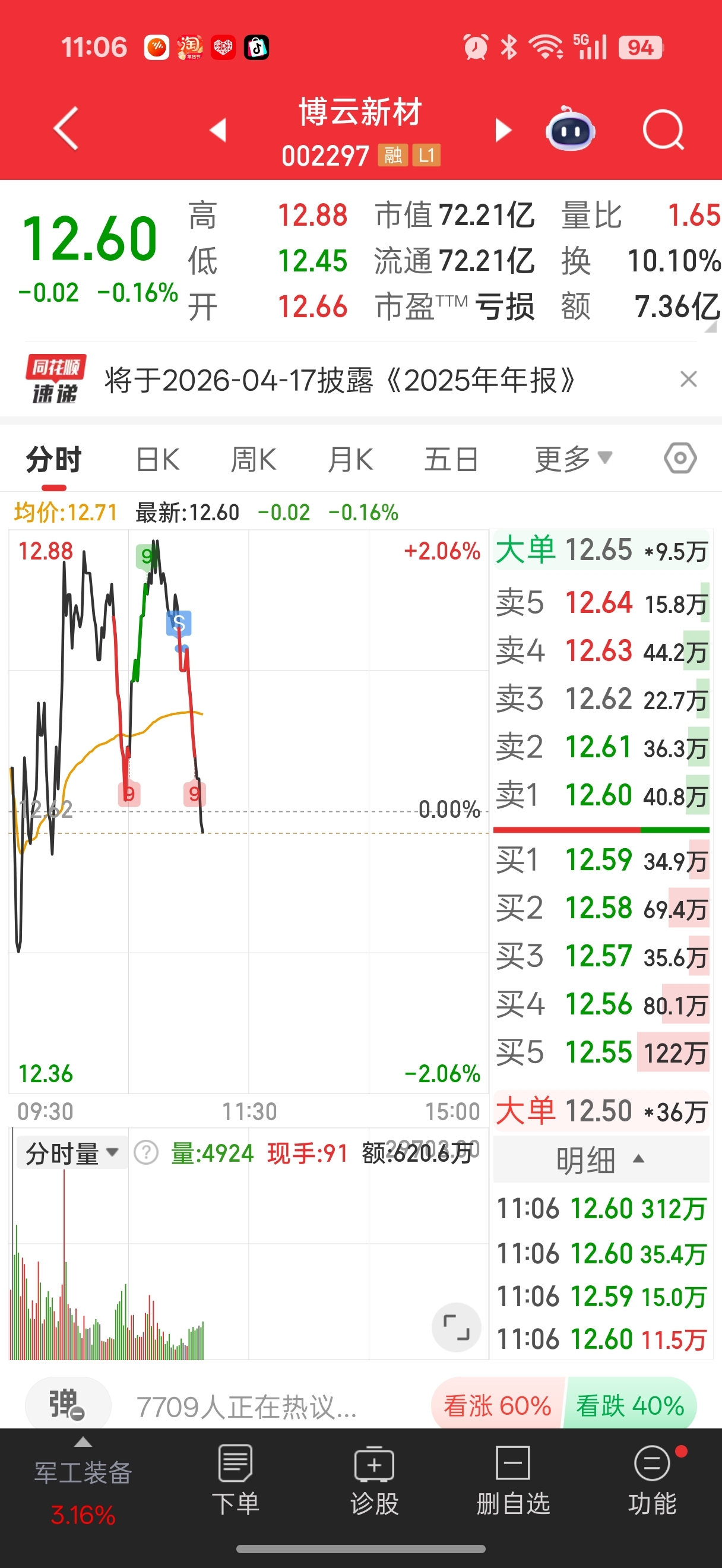 $博云新材(SZ002297)$ 砸吧使劲,砸的轻我都瞧不起你