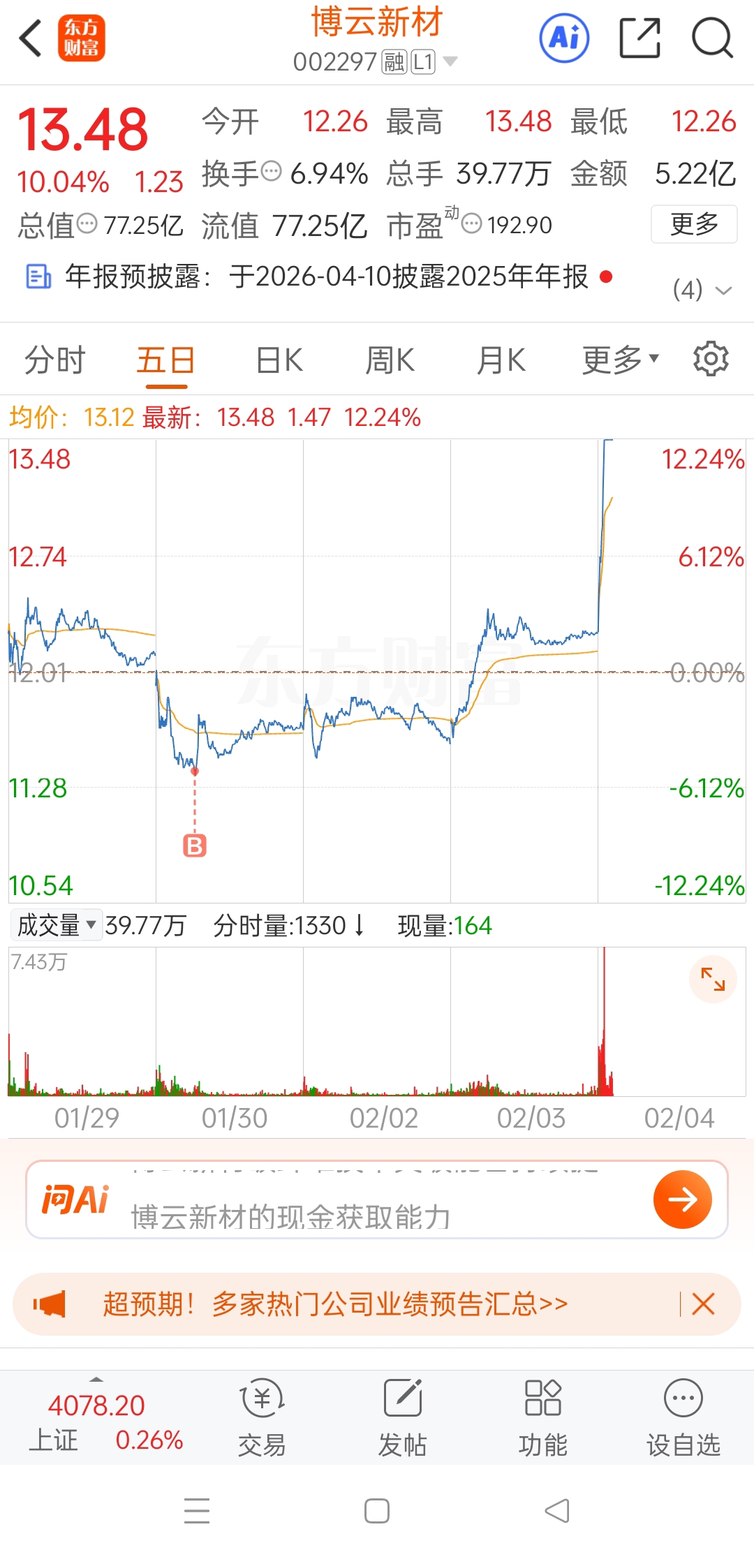 $博云新材(SZ002297)$ 买的少没想到涨停了~