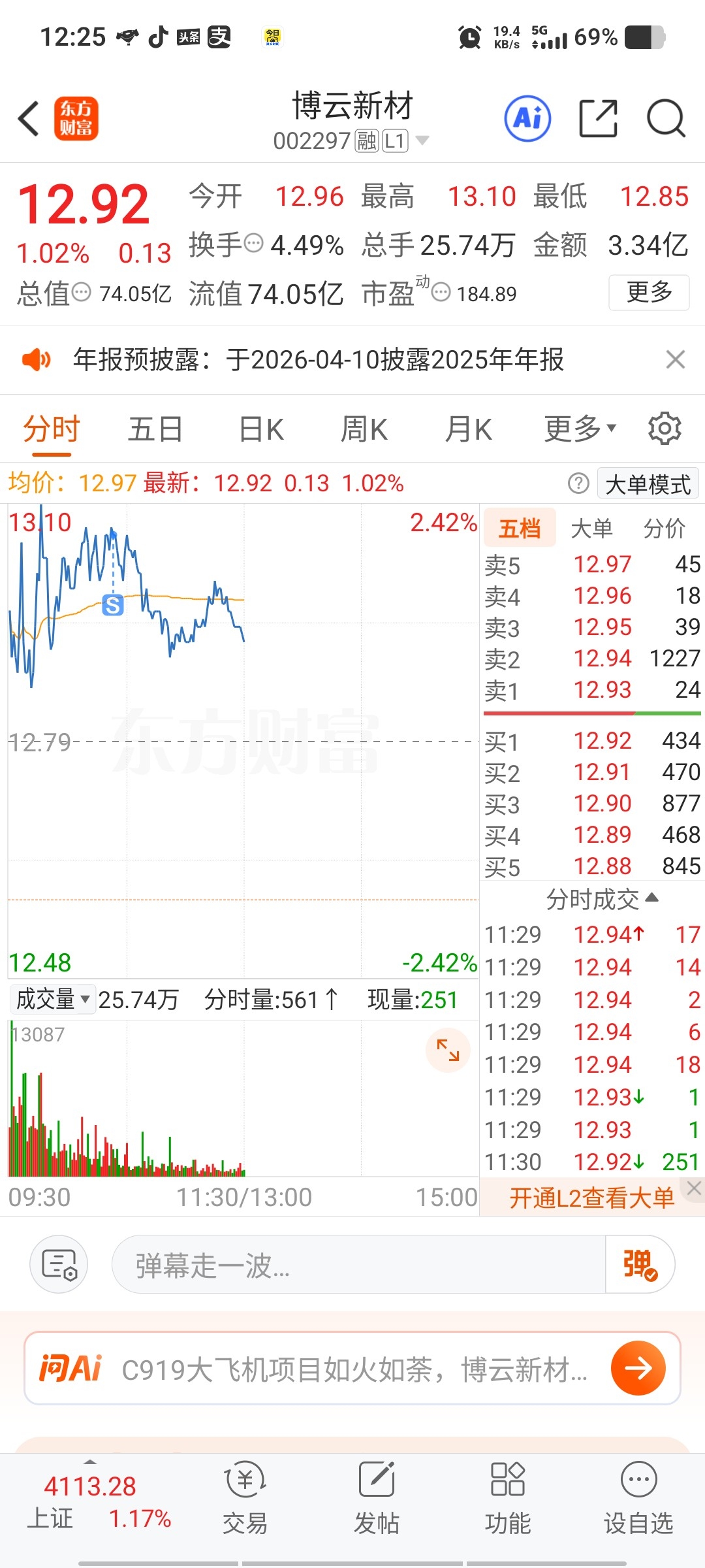 $博云新材(SZ002297)$ 我又被洗了,尾盘再看看有没有机会买回来