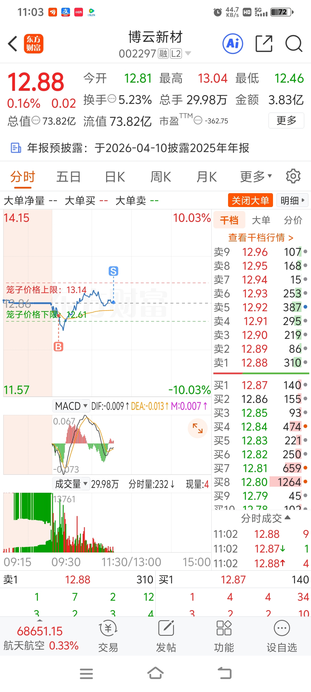 $博云新材(SZ002297)$ 每次拉红都是跑的时候