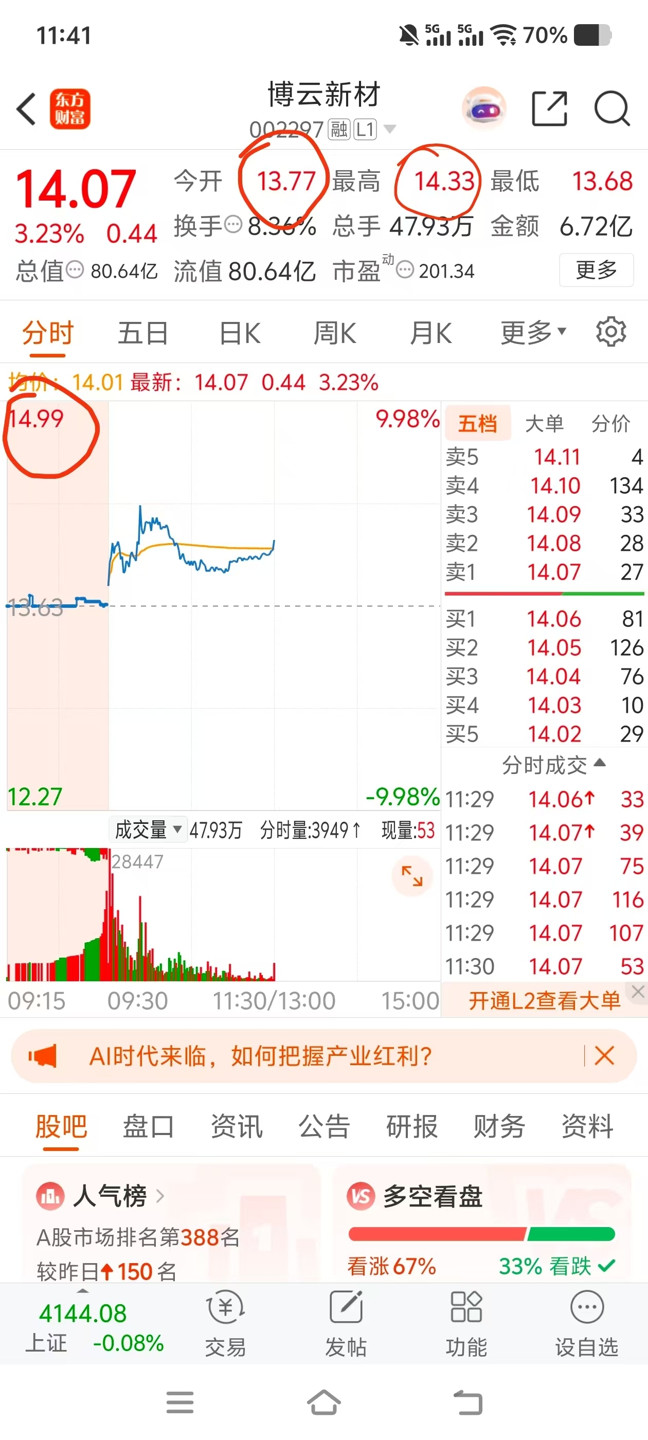 $博云新材(SZ002297)$ 继续,畸形,梭哈
