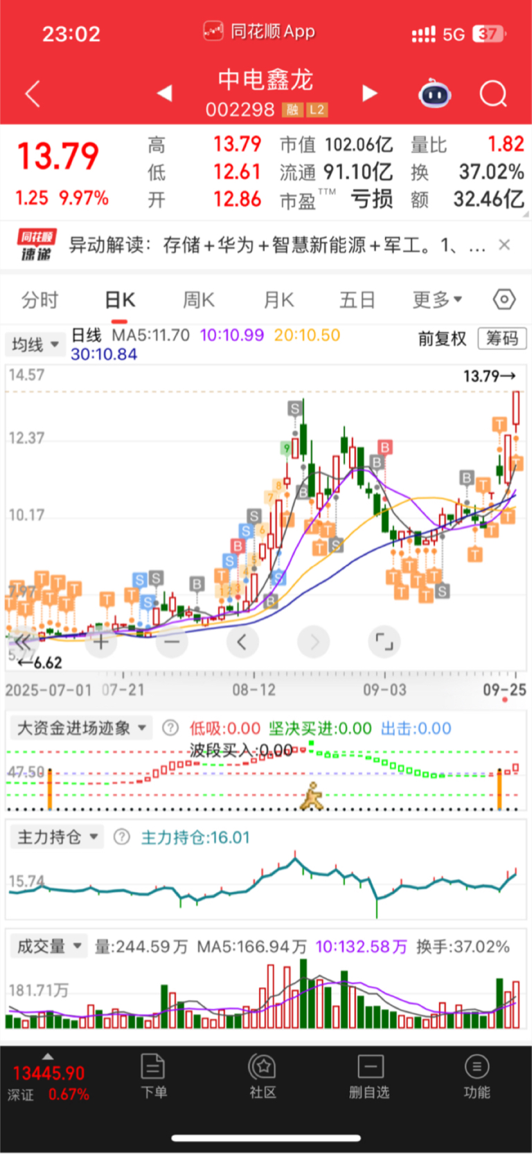$中电鑫龙(SZ002298)$ 一年做一个票就够了