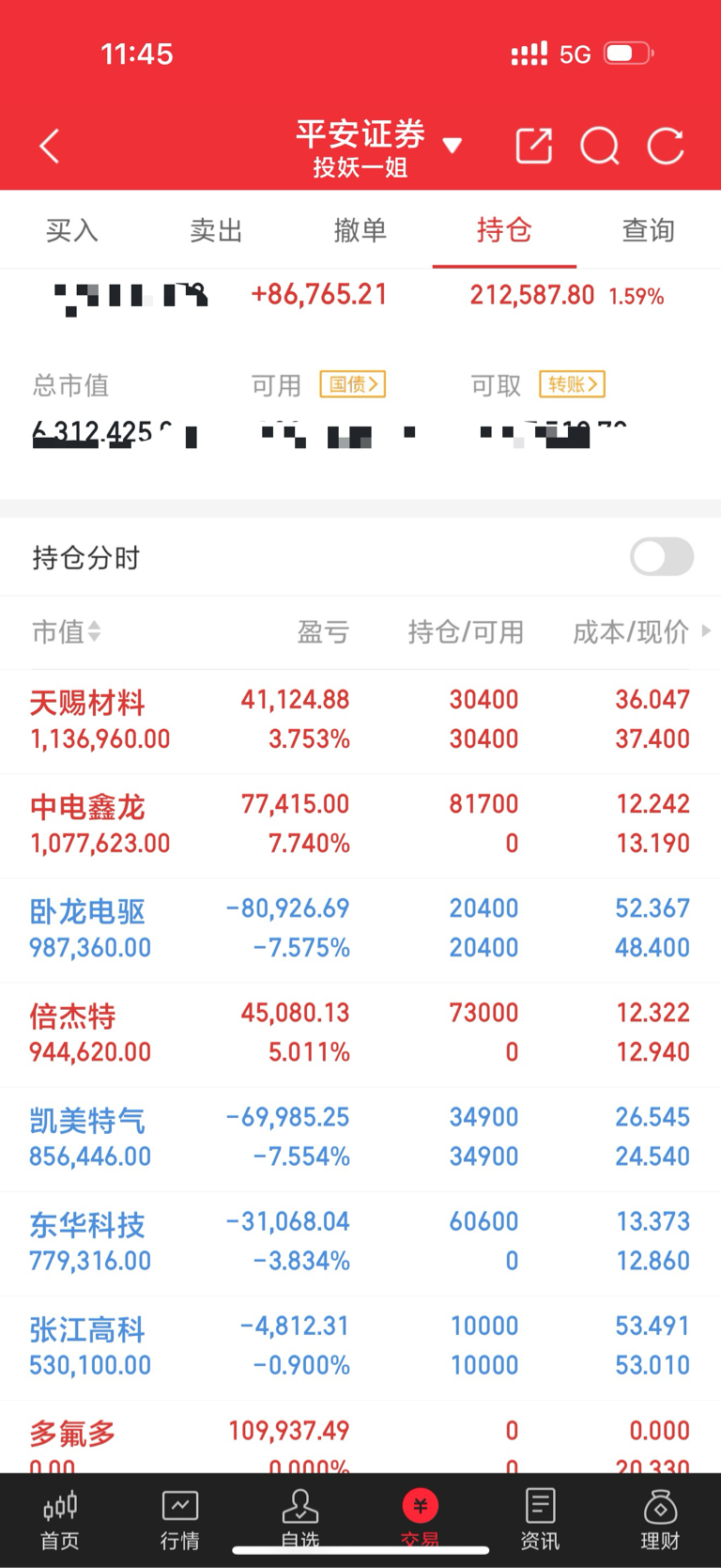 一姐早盘建仓:今日入场继续持有观望:卧龙电驱、张江高科、天赐材料、凯美特气,下午