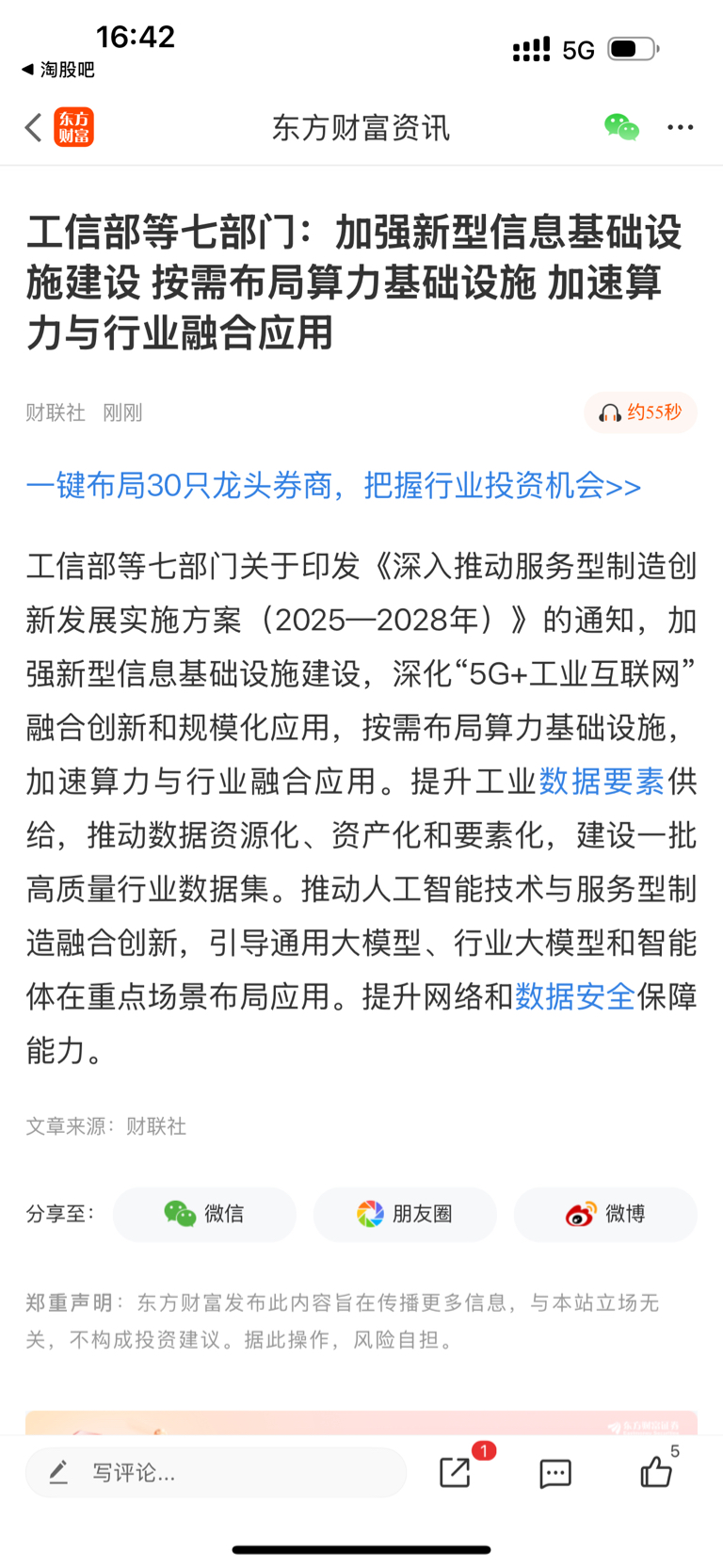 工信部等七部门关于印发《深入推动服务型制造创新发展实施方案(2025—2028年)》的通知,加强新型信息基础设施建设,深化“5G+工业互联网”融合创新和规模化应用,按需布局算力基础设施,加速算力与行业融合应用。提升工业数据要素供给,推动数据资源化、资产化和要素化,建设一批高质量行业数据集。推动人工智能技术与服务型制造融合创新,引导通用大模型、行业大模型和智能体在重点场景布局应用中电鑫龙作为东数西算的标识性个股,并且公司的"智慧用能、智慧城市、智慧新能源"三大业务板块数字化、智能化转型方向,公司的业务模式与政策鼓励的"制造+服务"融合发展方向高度契合。