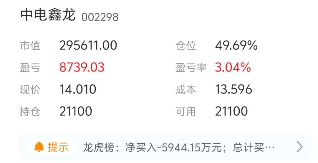 $中电鑫龙(SZ002298)$ 挑战主力底线!