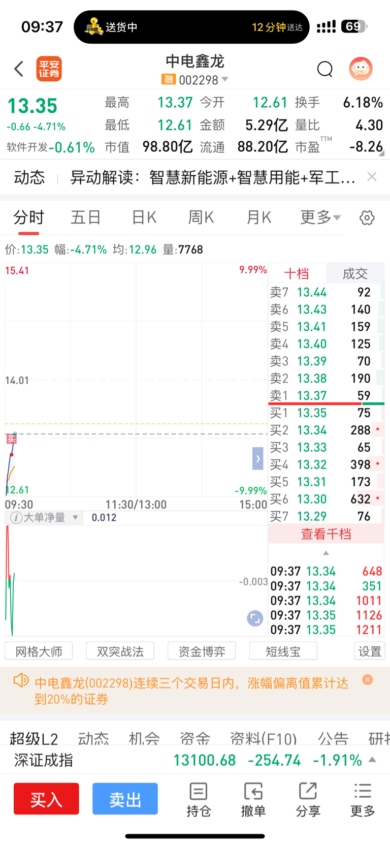 $中电鑫龙(SZ002298)$ 挂跌停没买到,下手有点晚了!