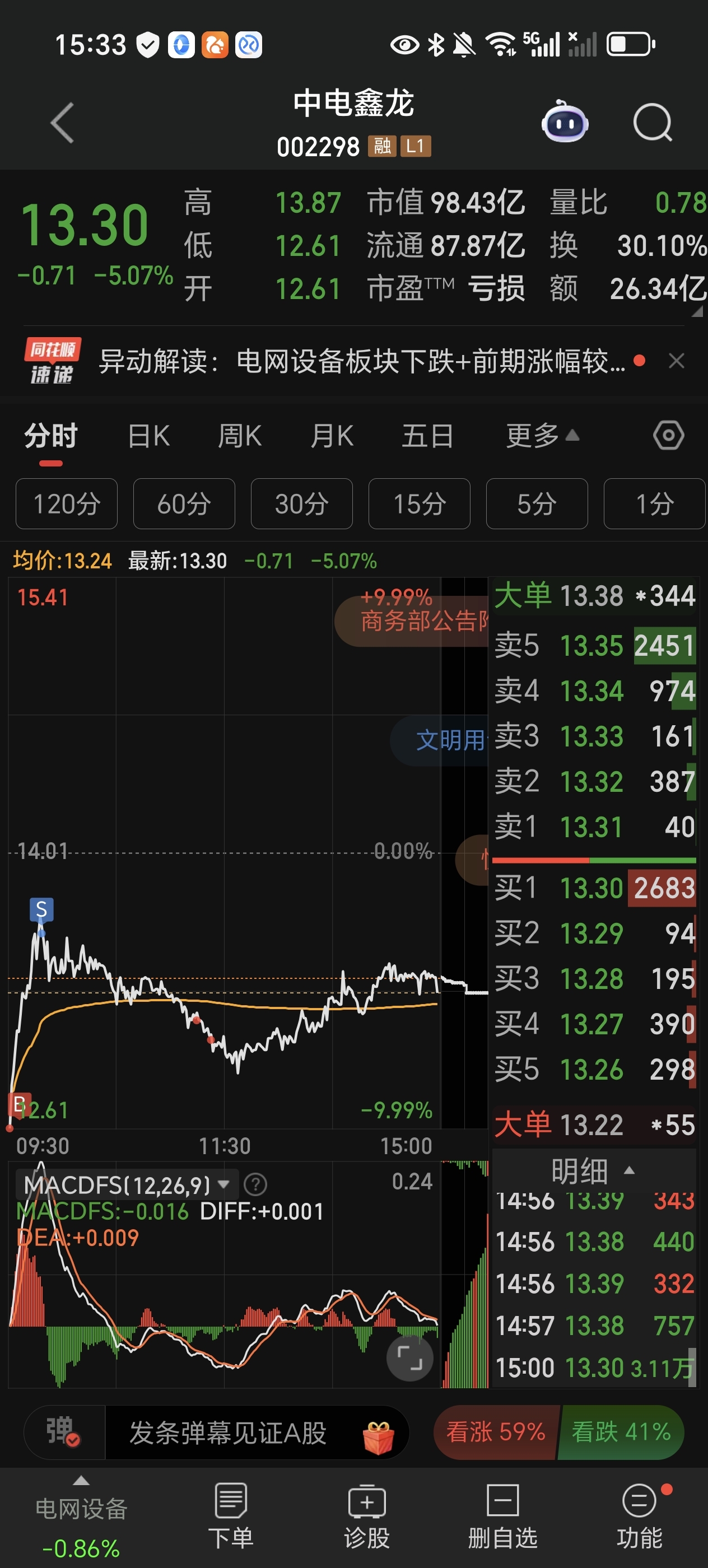 $中电鑫龙(SZ002298)$ 今天操作还是太急了,在低点买的话就可以赚钱了今天