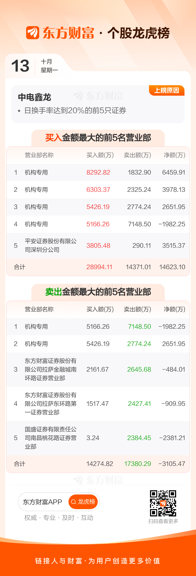 中电鑫龙(002298)龙虎榜数据(10-13)