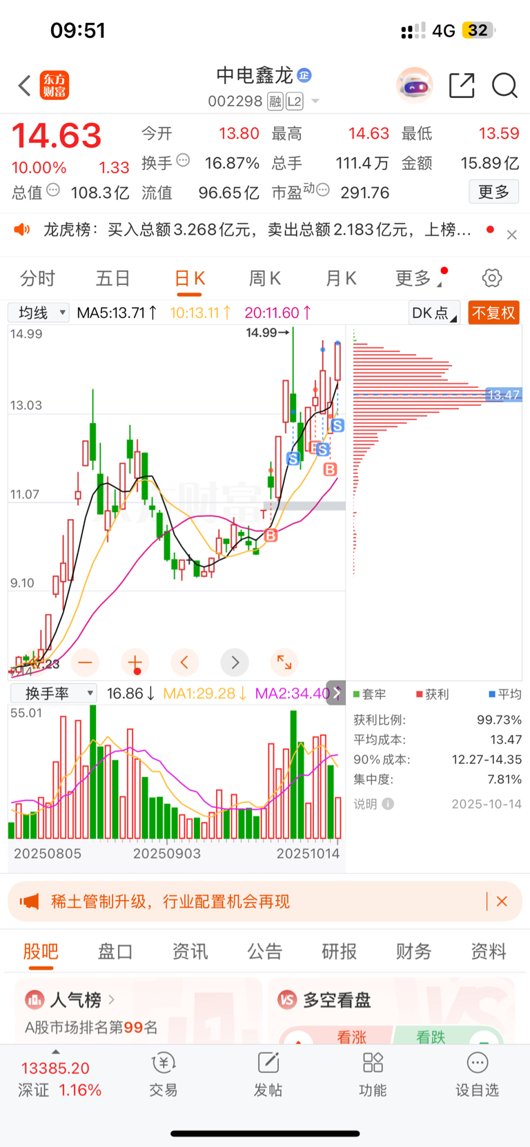 $中电鑫龙(SZ002298)$ 我先走了,祝留下来的兄弟们接着吃大肉